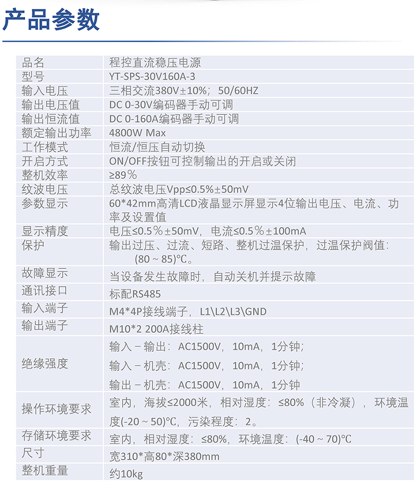 三相交流380V程控直流穩(wěn)壓電源YT-SPS-30V160A-3